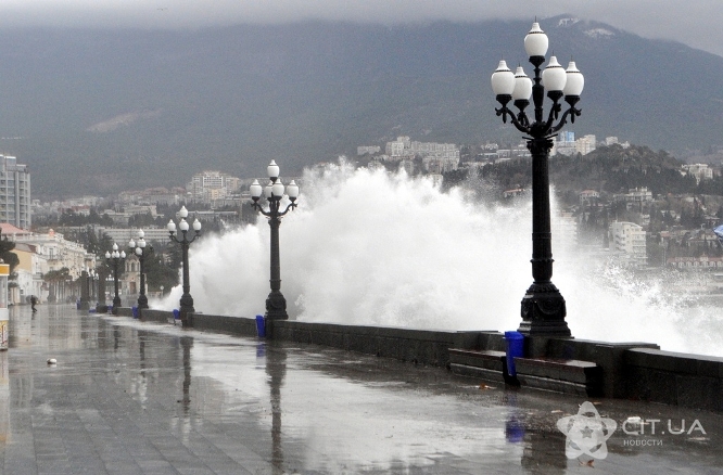 Гигантские волны разбивают набережную Ялты (ФОТО)