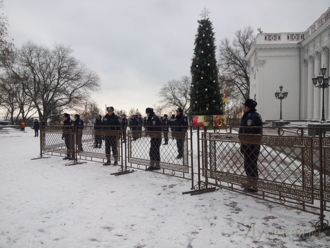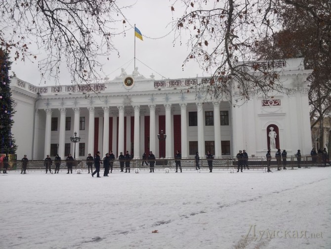 Заседание исполнительного комитета Одесского горсовета, которое проходит в эти минуты в здании муниципальной администрации на Думской площади, охраняет полсотни милиционеров.