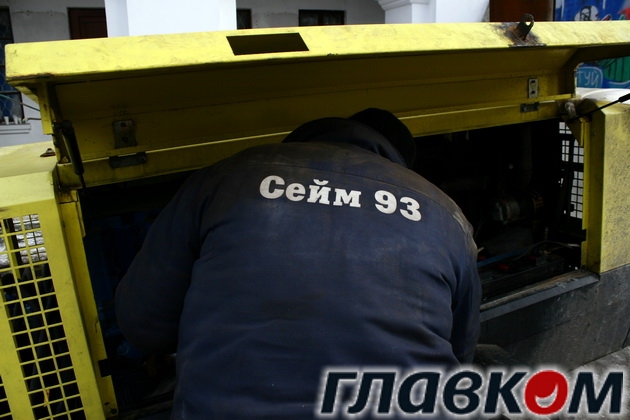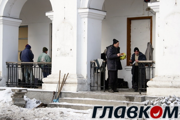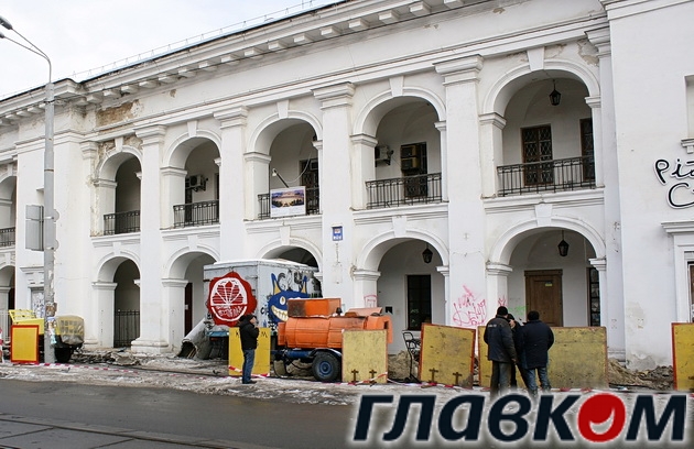 Рабочий также сообщил, что он работает на фирму «Сейм-93», которая является субподрядчиком. На месте работ был замечен человек в куртке с тем же названием. В связи с работами здание окружено заградительными щитами, но ни на одном из них не написано название фирмы, проводящей работы.