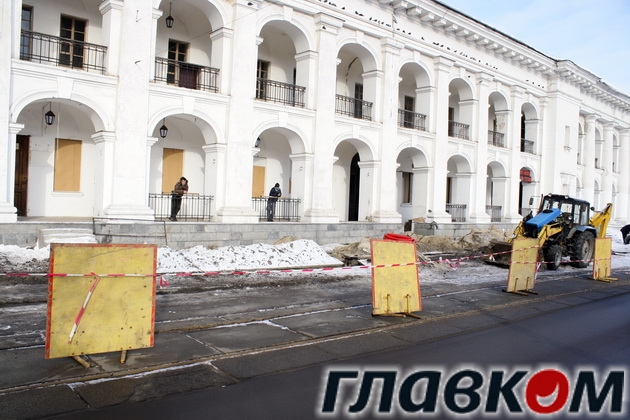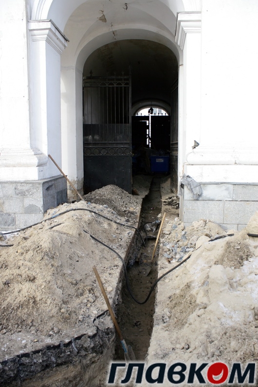 По словам одного из рабочих, электросеть прокладывается именно в здание Гостиного двора в связи с реставрацией из новой электроподстанции. «Сети электроснабжения старые, а здание требует большей нагрузки», - сказал строитель.