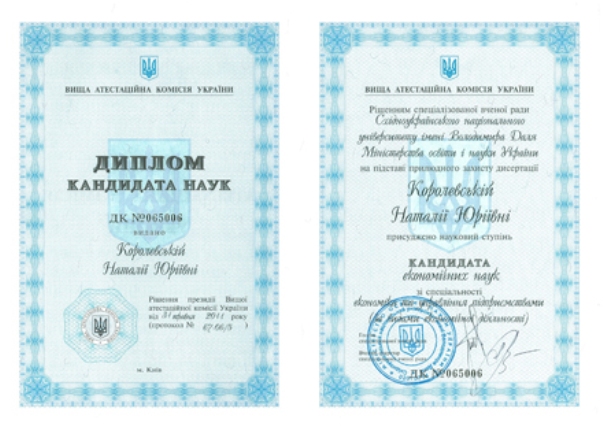 Пресс-служба министра социальной политики Наталии Королевской предоставила копии ее дипломов о высшем образовании и копию диплома кандидата наук. Пресс-служба предоставила документы в ответ на запрос информационного агентства УНИАН.
