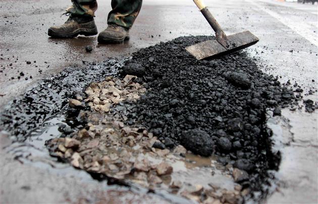 Асфальт на международной трассе Киев-Чоп кладут прямо в лужи (Фото)