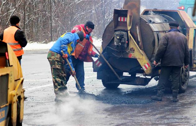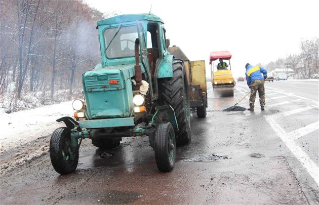 Отрезок международной трассы Киев-Чоп взялись ремонтировать. Ямы засыпают щебнем, а сверху кладут тонкий слой асфальта, несмотря на то, что в них еще стоит вода. Сама дорога тоже мокрая, а на голову рабочим падает мокрый снег, - сообщает Мукачево.net.