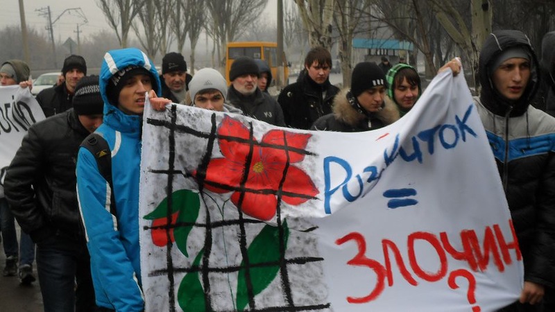 В Енакиево прошел запрещенный марш в поддержку молодежи (Фото)