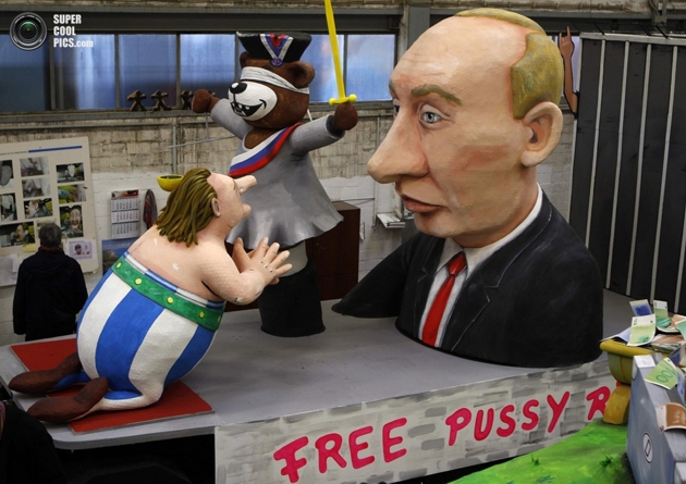 На карнавале, который традиционно высмеивает недобросовестных или неудачливых политиков, досталось и президенту России Владимиру Путину. Его высмеяли за скандал с российской панк-группой Pussy Riot, а также за российское гражданство Депардье.