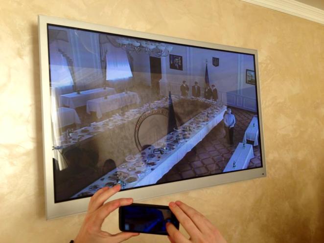 «Журналистам вырубили трансляцию после выступлений Януковича и Азарова. И здесь неожиданно на мониторах, куда была выведена трансляция, появилось видео банкетного зала!!! При этом банкет накрыт в малом зале КМУ, где обычно проходят заседания правительства», - сообщила она.
