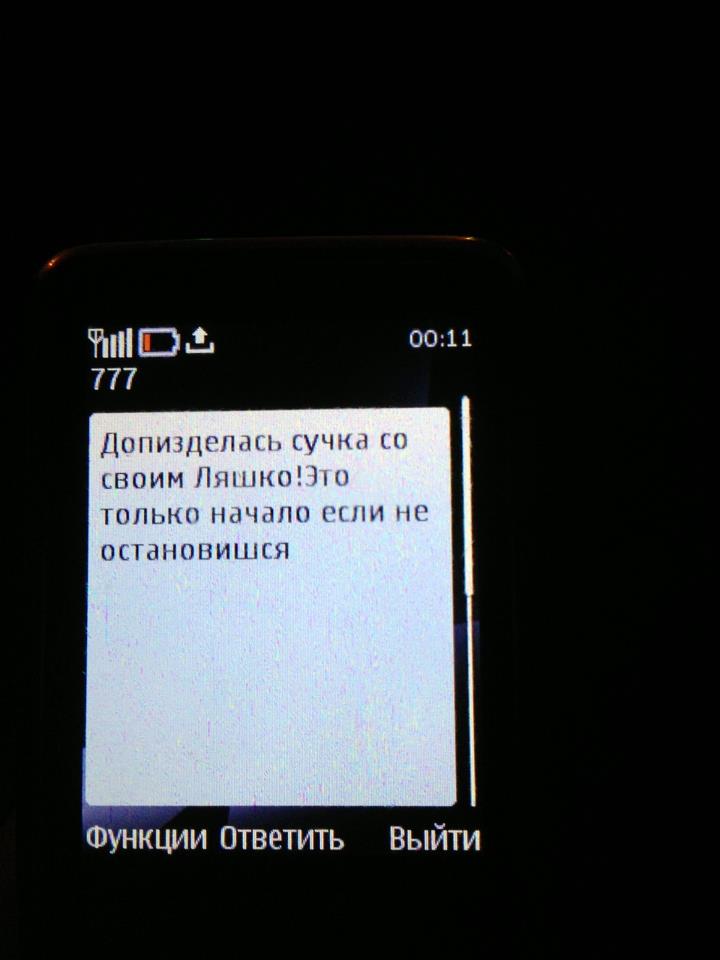 «Очевидно, что это попытка запугать мою помощницу, о чем свидетельствуют факты. «Допизделась сучка со своим Ляшко! Это только начало если не остановишся» - это уровень культуры наших политических оппонентов в общении с женщиной. СМС с таким текстом член Политсовета Радикальной партии, моя помощница Виктория Шилова получила через полчаса после нападения на свою машину в Киеве. Ей побили стекла», - сообщил политик.