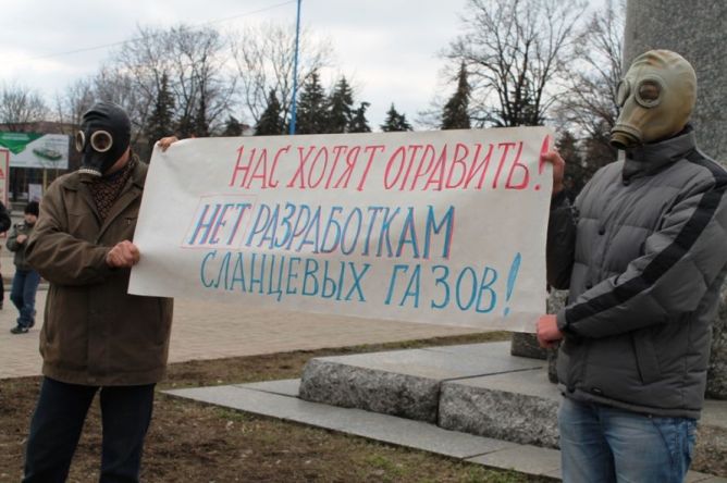 Активисты, выступавшие на митинге, назвали предателями Донбасса президента Украины Виктора Януковича и депутатов Донецкого областного совета от Артемовска, которые проголосовали за добычу газа на участке Юзовском.