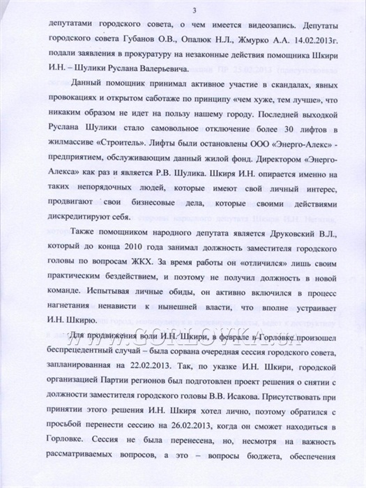 Как указывается в тексте письма, которым располагает сайт Gorlovka.ua , «на депутатов, которые не разделяют деструктивную политику Игоря Шкири, оказывается давление вплоть до угроз от его помощников».