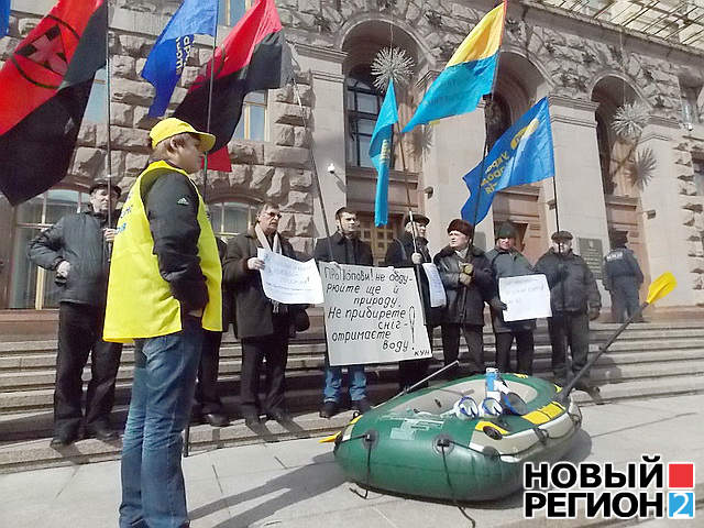 Сегодня под стенами мэрии Киева собралось 16 пожилых человек (в основном мужчин) – активистов Конгресса украинских националистов и союзнических организаций. Целью акции было предупредить население, что из-за бездеятельности властей Киеву угрожает наводнение, которое начнется, как только растает выпавший на минувших выходных снег.