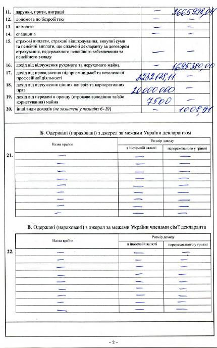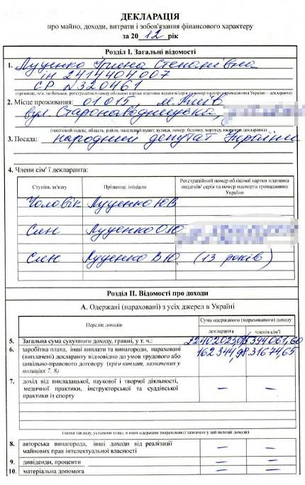 Зарплата Ирины Луценко составила 162,3 тысячи гривен. Доход от предпринимательской деятельности - еще 2 миллиона.