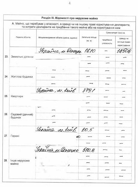 Перечень имущества остался без изменений. Янукович-младший по-прежнему владеет квартирой в Киеве площадью 379,1 кв. м, земельным участком в 0,161 га в Донецке. Вместе с тем, имеет в столице гараж площадью 20,5 кв. м и дачу в Донецке площадью 510,8 кв. м.