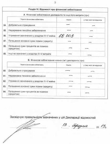 Согласно документу, за год доход народного депутата от Партии регионов упал на 36 тыс. грн. – до 197,9 тыс. грн. Он снизился за счет материальной помощи, которую в прошлом году парламентарий не получил, о чем свидетельствует прочерк в соответствующей строке.