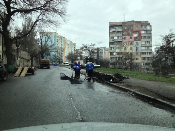 В Одессе ремонтники кладут асфальт прямо в лужи
