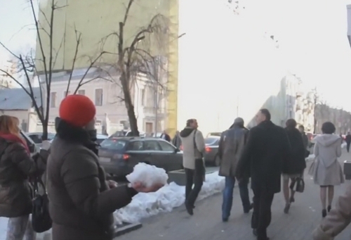 «И было бы все неплохо, если бы они выкрикивали какие-то претензии, говорили то, что они думают. То есть они начали хватать нас за руки и после того, как мы двинулись дальше, они стали бросать нам в спину не снежки, они стали бросать в нас глыбы льда и куски земли», - заявила она.