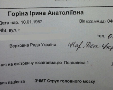Горина показала справку, что у нее сотрясение мозга (документ)