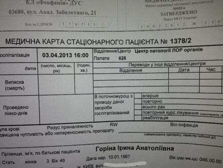 Напомним, 2 апреля у Верховной Рады состоялась организованная оппозицией акция, участники которой требовали назначить дату проведения выборов мэра столицы и Киевсовета. 3 апреля милиция Киева открыла уголовное производство по факту нападения сторонников оппозиции на народного депутата от Партии регионов Горину. Горина получила телесные повреждения. По предварительному заключению медиков, обследовавших депутата в стационаре одной из столичных больниц, у нее черепно-мозговая травма и сотрясение головного мозга.