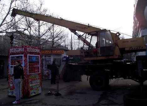 Вместе с коммунальщиками прибыла опергруппа милиции, чтоб следить за процессом сноса будок.