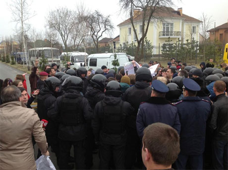 Немного позже подъехал автобус с Беркутом. Правоохранители окружили активистов.