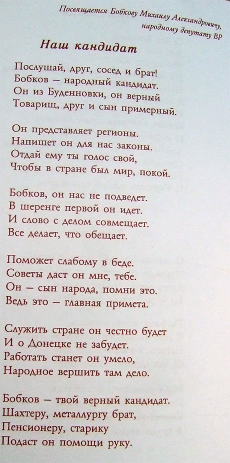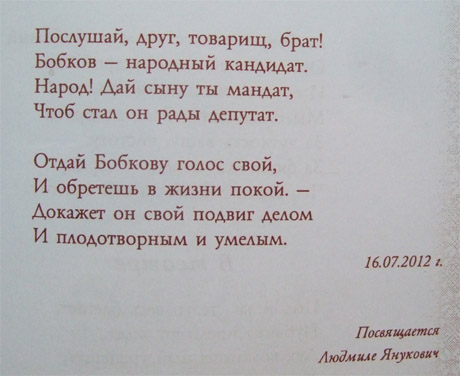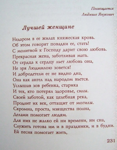 В Донецке представили поэтический сборник со стихами, прославляющих жену президента Людмилу Янукович и депутатов от Партии регионов.