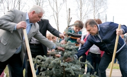 Янукович посадил ель вместе с воспитанниками детдома (ФОТО)