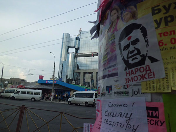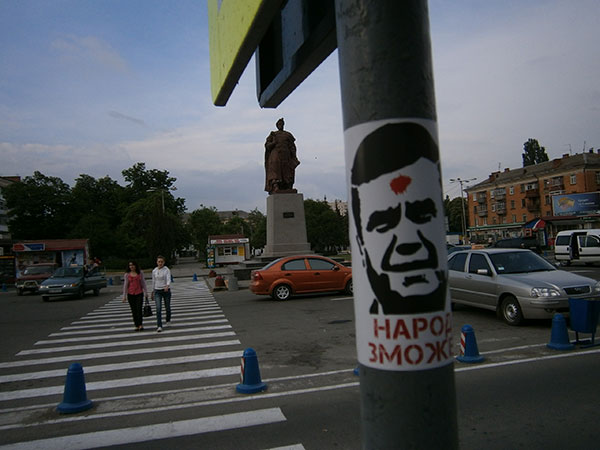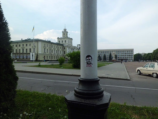 Хмельницкий обклеен фотографиями Януковича с точкой во лбу (ФОТО)