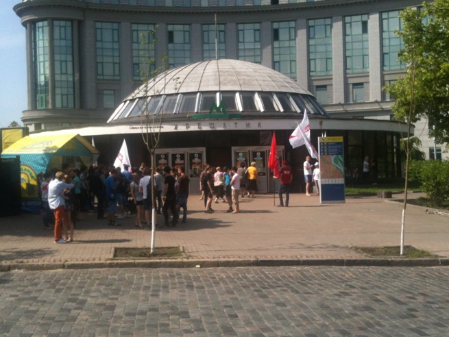 Возле станции метро «Крещатик» на ул. Институтская собираются участники финального митинга оппозиции «Вставай, Украина!».