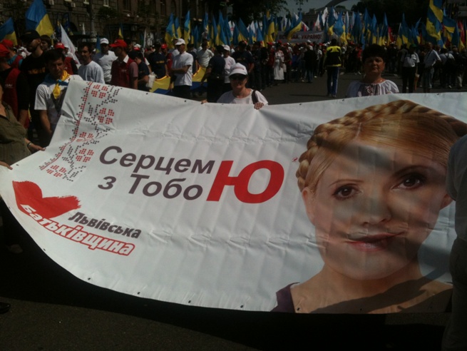 Активисты Львовской организации «Батькивщины» привезли в Киев на митинг «Вставай, Украина!» огромный баннер с фотографией Юлии Тимошенко.