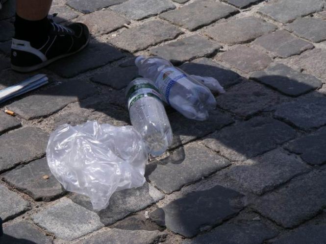 Как передает «Киев. Комментарии», по всему периметру площади на мостовой лежат неубранные пластиковые бутылки, стаканы и пакеты.