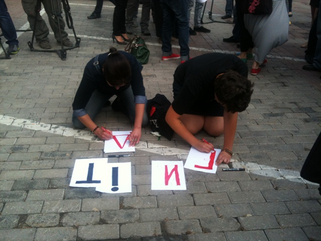 Активисты требовали расследования нападения на Ольгу Сницарчук и Владислава Соделя, а также выступают против лишения аккредитации журналистов из-за того, что они выразили свой протест на заседании Правительства 22 мая.