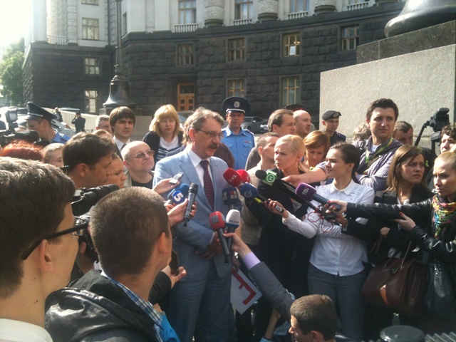 Спустя какое-то время к митингующим вышел пресс-секретарь Азарова и пригласил к себе журналистов, которые вчера были лишены аккредитации за акцию на заседании Кабмина.