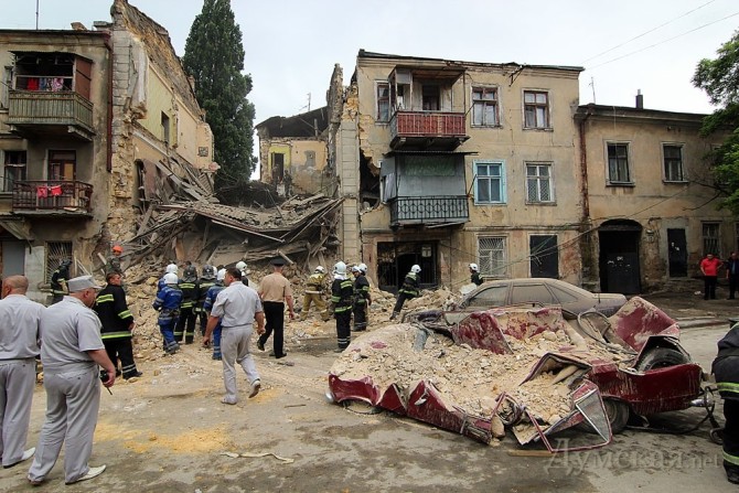 На улице Куйбышева в Одессе продолжается операция по спасению мужчины и женщины, оказавшихся под завалами дома, который рухнул сегодня в 15:00.