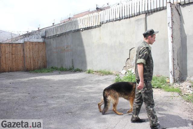 Чтобы предотвратить бегство, под бетонный забор, выходящий на проезжую часть, поставили охранников с собаками.