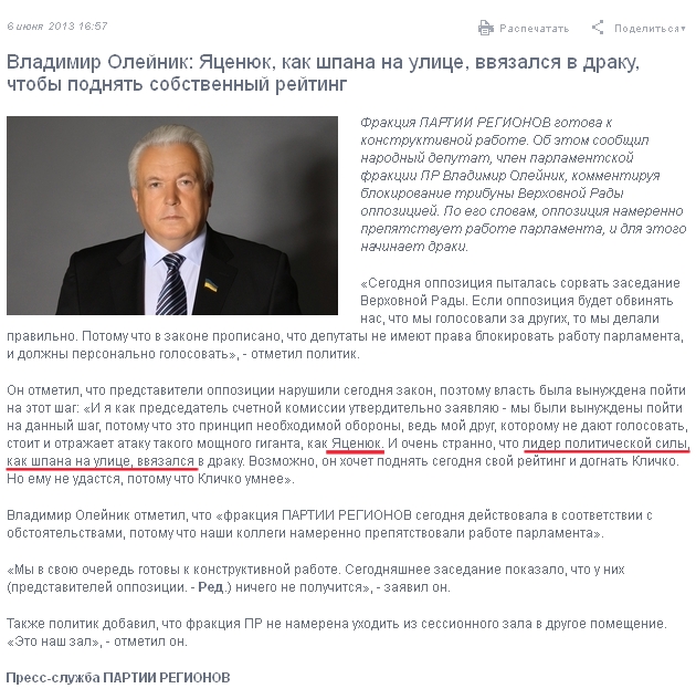 Олейник отметил, что «фракция Партии регионов сегодня действовала в соответствии с обстоятельствами, потому что наши коллеги намеренно препятствовали работе парламента».