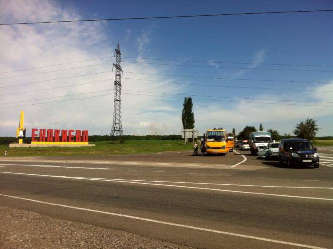 На выезде из Енакиево (Донецкая область) в сторону Донецка образовались заторы из автомобилей и общественного транспорта.