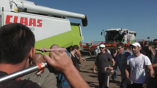 «Около 80 бритоголовых братков с пистолетами и помповым ружьем предприняли попытку проникнуть на территорию предприятия. Охрана и сотрудники агрофирмы «отбили» первую волну захватчиков, тогда те открыли огонь из помпового ружья. Одному из работников попали в пах, еще одному - в голову. Сейчас вооруженные «братки» разделились на две группы, одна продолжает карабкаться в ворота, другая пошла в обход с другой стороны. Уже неоднократно вызывали милицию, ГАИ и скорую помощь, однако, никто не едет, все делают вид, что ничего не происходит», - говорится в сообщении пресс-службы общественной организации «Селянский фронт».