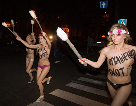 Как FEMENистки встречали Лукашенко в Киеве (ФОТО)