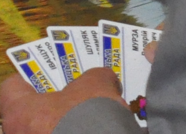 Перед регистрацией местных избранников у него в руках были карточки для голосования депутатов из других фракций, которые на сессию не пришли. В частности, это карточки Петра Иващука, Владимира Шуляк (оба из фракции Народной партии) и бютовца Валерия Мурзы. Далее эти карточки путем «кнопкодавства» голосовали за проекты решения сессии.