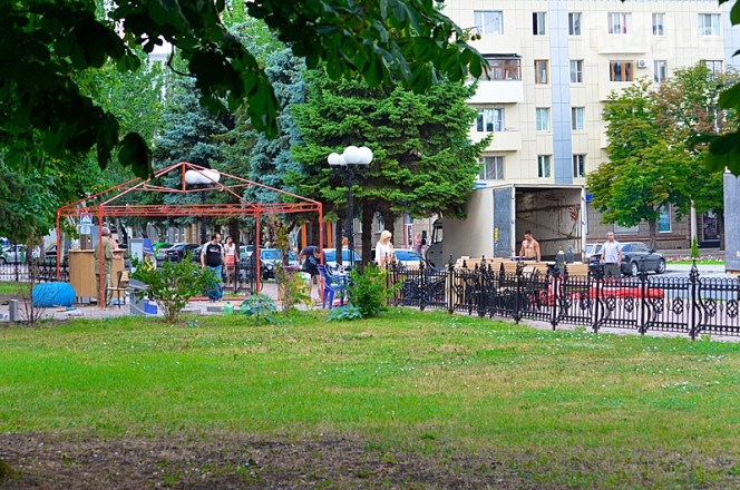 В сквере Героев ВОВ демонтируют летнюю площадку, которая находится тут уже несколько лет.