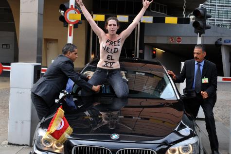 В Брюсселе активистки FEMEN, обнажив верхнюю часть тела, сделали попытку заблокировать автомобильный кортеж премьер-министра Туниса Али Ларайеда. Девушки требовали освобождения своих коллег, которые были ранее арестованы в этой стране.