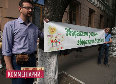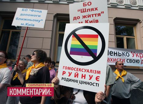 Под стенами Верховной Рады проходит акция против принятия законопроекта о секс-меньшинствах, который входит в так называемый «евроинтеграционный пакет».