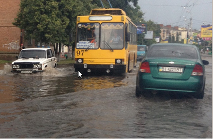 В Полтаве ливнем затоплены центральные улицы (ФОТО)