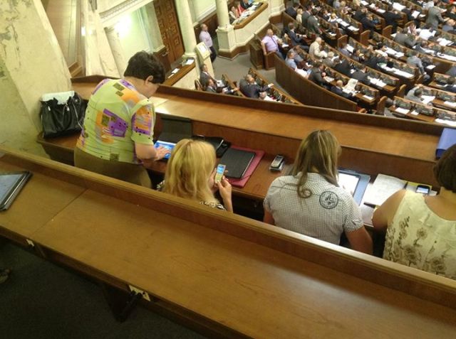 «Одно из ноу-хау удалось обнаружить вчера: четыре женщины в ложе на втором этаже с программами на iPad в онлайн-режиме контролировали, где и на каком месте отсутствуют члены ПР, но где нет контроля их отсутствия. Чтобы давать по телефону «добро» на голосование «за себя и за того парня». При этом, так выглядит, что у них была связь с Рыбаком, потому что он очень умело переставлял вопросы повестки дня, четко получая информацию, можно смухлевать, или сейчас не стоит», - пишет Оробец.