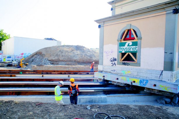 В пригороде Женевы инженеры успешно передвинули по рельсам здание старого вокзала Шен-Бург, чтобы освободить место для строительства новой станции.