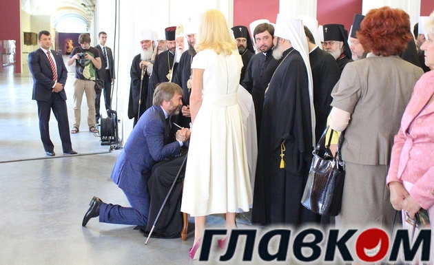 Как передает корреспондент «Главкома», во время мероприятия Новинский пообщался с главой Украинской православной церкви Московского патриархата митрополитом Владимиром, встав перед ним на колени.
