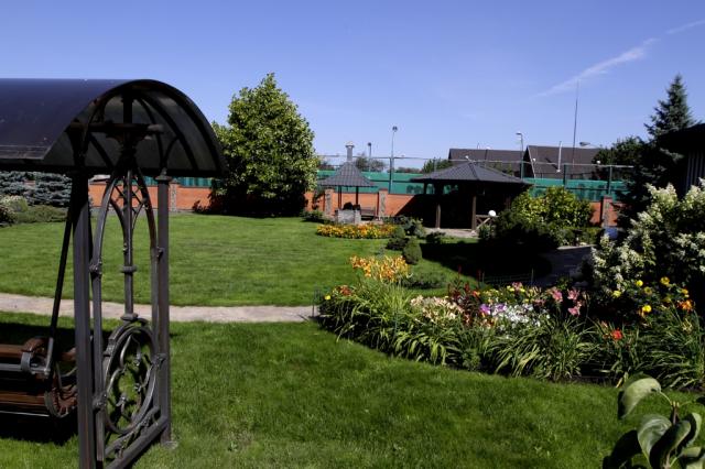 Трехэтажный дом Мельника из красного кирпича — самый большой на улице. Двор впечатляет размерами — не менее одного гектара, на котором разместились сад с шашлычной, теннисный корт, небольшая пасека и несколько хозпостроек и гостевых домиков. Дома никого не оказалось. «У них два дня даже вечером окна не светятся. В больнице, наверное, все, — подсказывает соседка. — У сына спросите — он живет напротив».