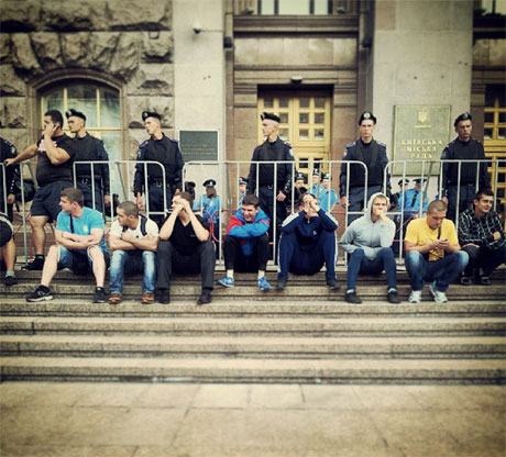 Под киевскую мэрию уже согнали «титушек», бюджетников и милицию (ФОТО)