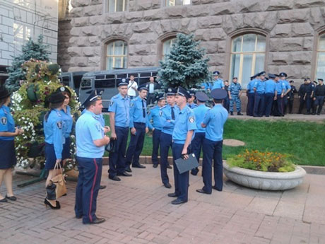 «Вход к КГГА уже перекрыли металлической оградой. Милиция усиленно охраняет здание. Возле входа в Киевсовет дежурят 11 автобусов милиции, автозак и полсотни «людей спортивной внешности». Во дворе Киевсовета тоже несколько автобусов с «Беркутом», - написал он.