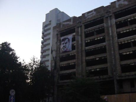В ночь с 20 на 21 августа из окон недостроенного здания на Львовской площади Киева был вывешен несколькометровый баннер с «простреленным» президентом Виктором Януковичем. Об этом сообщили в «Самоорганизации Граждан».