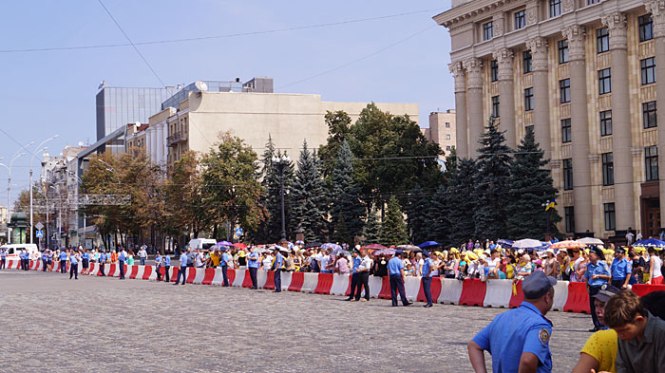 Вся площадь по периметру огорожена, везде стоят кордоны милиции, на торжествах должен присутствовать президент Виктор Янукович.